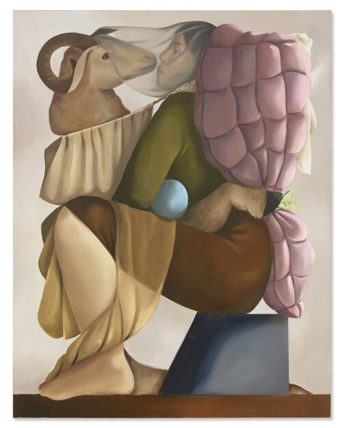 This popularity is reflected in the artist’s auction results in the last month: The standout piece It Belongs to You (2020) sold for an astounding $141,915 at Christie’s 20th and 21st century evening sale. The painting, an odd composition portraying a woman embracing a goat, wrapped in fabric, was one of two six-figure sales Dal-Pra achieved in quick succession, with Una Vita Cosi (2019) selling for $112,575 at Christie’s in May.