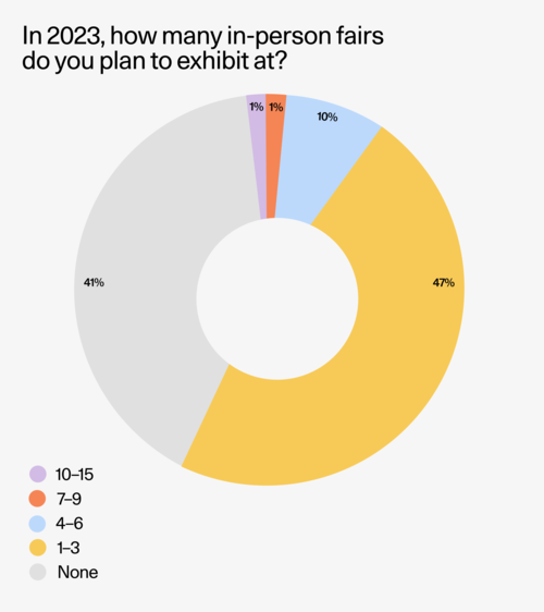 Art fairs returned in a big way last year, with more than 300 taking place around the world in 2022. Despite this number, some 47% of small galleries said they planned on taking part in one to three fairs this year, and 41% said they didn’t plan on having a booth in any fairs whatsoever.