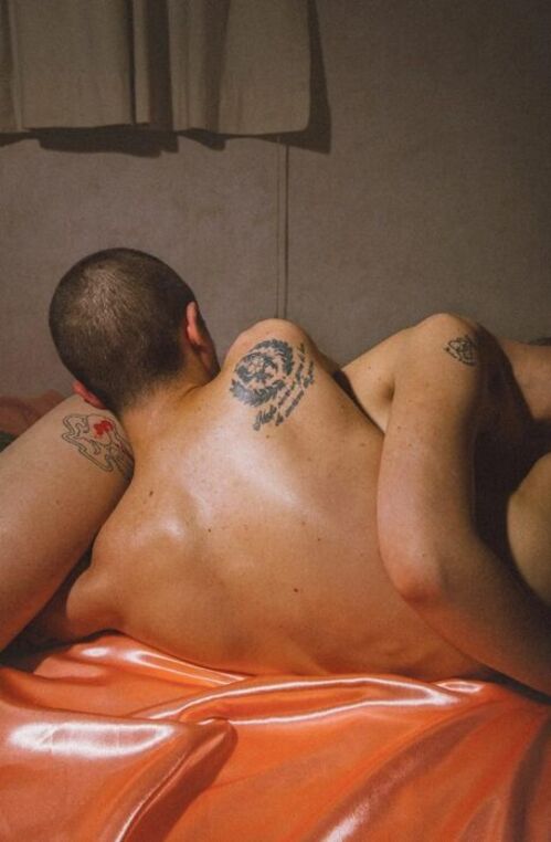 In Fatima and Khadim, Dakar (2020), for example, Escobar depicts a serene moment between a couple standing in a radiant sea of water. Similarly, in Untitled (2023), a couple share an embrace on shimmering satin sheets, their naked bodies intertwined. Both works deploy warm palettes and striking textures, with each visual recalling scenes from classic films such as The L-Shaped Room (1962). Escobar uses this stylized staging to bring out the interior lives of her subjects: “I would say that I like depth, strength, emotion, and intensity—at least that’s what moves me. So that’s certainly what I’m trying to capture in my portraits,” she shared in an interview with Fisheye Magazine.