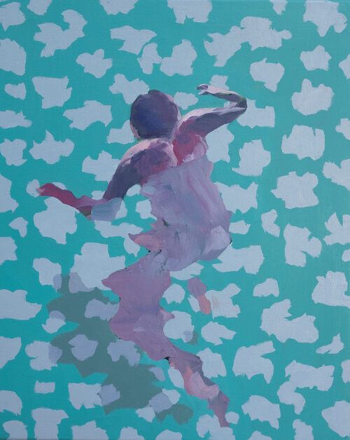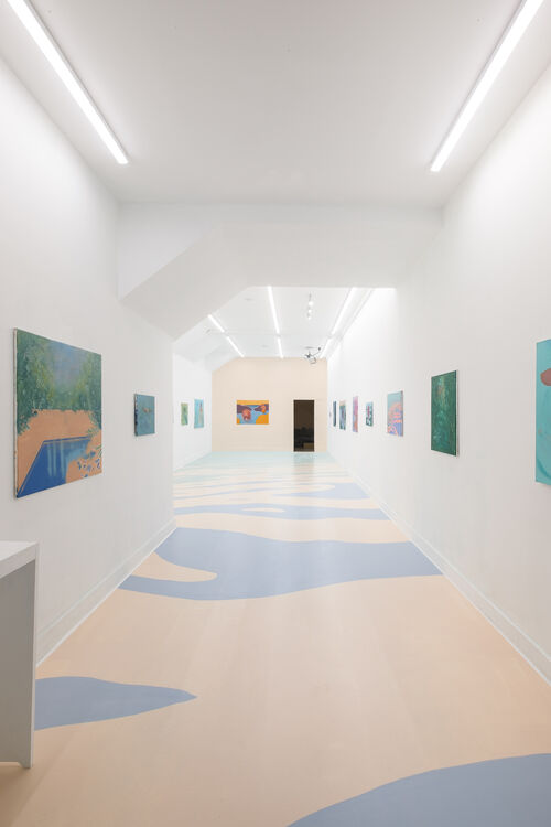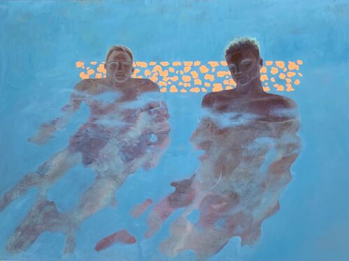 In this new series of figurative paintings, Los Angeles–based painter Abbey Golden shares her personal experiences with identity and sexuality, using water as a metaphor for fluidity. “Coming of age in suburbia during [the] early aughts felt like a sexually repressive time,” Golden explained. “Sexuality and identity were binary, and anything astray would lead to a terrifying and lonely otherness. In this context, the backyard pool represented wealth and hushed late-night rendezvous; the trying on of different skins and identities. Natural bodies of water were often gathering grounds magnetically pulling everyone together, yet the moment you dive into the deep end…total isolation.”