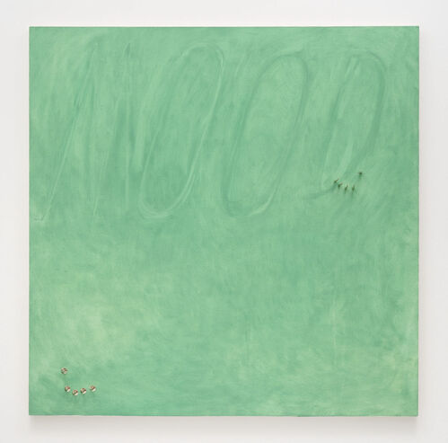 The Tokyo-based Chinese artist Bo Yang is interested in the distance between popular culture and our everyday lives. The artist’s enigmatic, intriguing works draw on the products of popular culture—music, fashion, social media, celebrity, and brands—and how they influence us. Several new heart-shaped works riff on the “like” icon on Instagram and other social media sites, and the way it’s become an ingrained part of everyday life. Several works also feature the word “mood,” in response to the way our mental state, more than logic, may drive our actions.