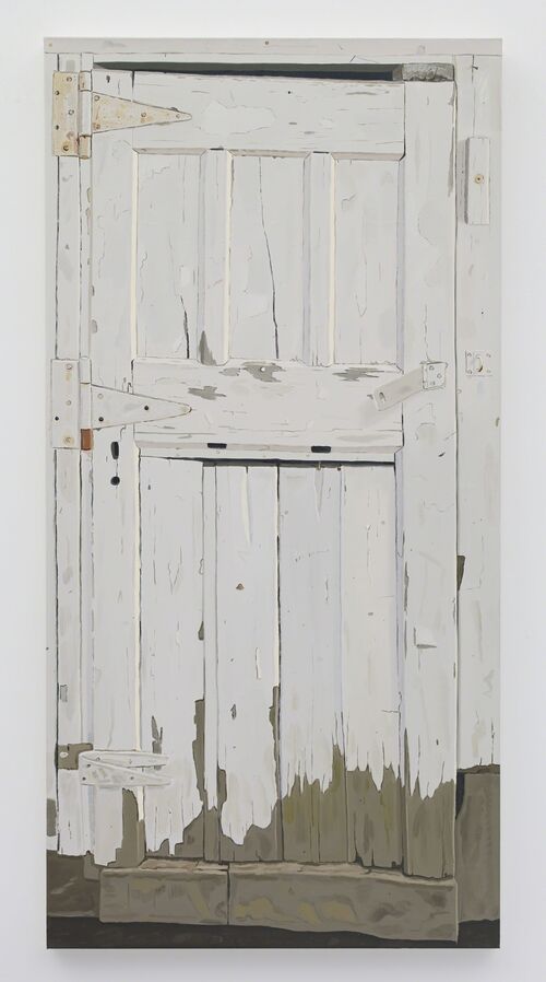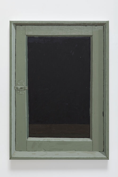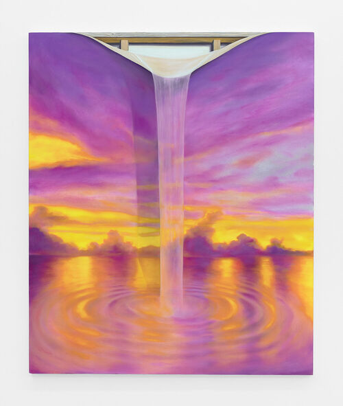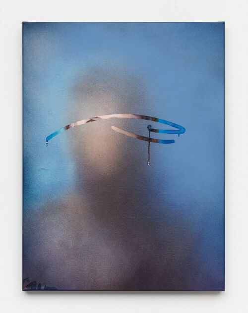 In works like WP (2023), part of a recent solo show at Gether Contemporary, Mühlenbrink turns the canvas into a misted window, complete with finger-drawn graffiti; the resulting drips appear to cut through the fogged-up glass as they slide down the pane. They are so phenomenally lifelike that even the artist’s colleagues and gallerists have been fooled, but mere deception is not his aim, he told Artsy—it is the distance between painting and viewer that allows for the suspension of belief that fascinates him.