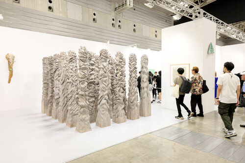 Japanese galleries were also enjoying the opportunity to play on home turf. At Tokyo gallery ShugoArts’s presentation, 30 of Shigeo Toya’s wood sculptures inhabited the booth like an elegant forest. Meanwhile, a series of eye-popping paintings by in-demand painter Aki Kondo had all sold out or were on hold by the end of the VIP day. Yuehan Zhao, a representative of the gallery, expressed excitement at the ability to be able to bring heftier works such as Toya’s to a fair without having to pay excessive duties. “I think the size of 30 pieces is very important,” she told Artsy. “I’m so, so happy that we in Tokyo can achieve that.”