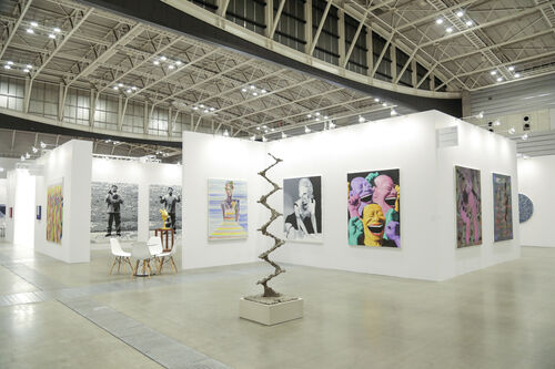 “We’ve already met a lot of Japanese clients and it’s very busy,” said Thibaut Geffrin, a director at tastemaking internet gallery Almine Rech. The selection of artists, he said, was intended to show “the global programme of the gallery,” and several of its big name-works had sold by the end of the day. Its first-day sales included an eye-catching painting by Chloe Wise that was sold in the range of $101,000–$110,000, a Tom Wesselmann painting of a black bra and green shoes sold for between $425,000–$460,000, and a work by Alexandre Lenoir for $110,000–$120,000. With other in-demand names on view at the booth, including Vivian Springford, Günther Förg, and Roby Dwi Antono, the gallery looked to be on course for a successful outing.