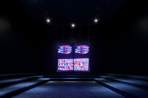 Other sections at the fair included “Tane” (or “Seed”), dedicated to works created using digital techniques. There, New York– and L.A.-based gallery The Hole presented a typically eye-catching booth, which included the trippy double-channel video installation Novacene (2023) by Ry David Bradley and Matthew Stone’s video Human In The Loop (Depth Mix) (2023). The latter work is a hypnotic, frenetic screen that stopped more than a few visitors in their tracks.