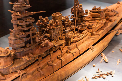 At fellow Tokyo gallery ANOMALY, a similar exercise in scale was taking place with Yukinori Yanagi’s cast-iron battleship piece taking center stage. The ship, surrounded by debris and paraphernalia, demonstrates the artist’s recurring, withering references to Japanese military history and nationalism. “The work presents the materiality of Japan’s historical consequences and politics, so this work offers an important opportunity to reconsider the country of Japan itself,” said gallery representative Atsumi Sato.