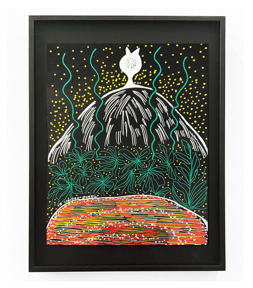 His tireless work as an educator, curator, and interpolator with his non-Indigenous contemporaries extended to institutional critique: Having advocated for broader inclusion of Indigenous art in the 34th São Paulo Bienal, he also curated a concomitant exhibition, “Moquém_Surarî: Contemporary Indigenous Art,” at the neighboring Museu de Arte Moderna de São Paulo. Esbell’s own astoundingly patterned acrylic and pen paintings depict spiritual beings and the continuity between the spiritual, societal, and natural worlds. His works were featured in 2021 in a solo show at Millan (which represents his estate), at the 34th São Paulo Bienal, and at the 2022 Venice Biennale.