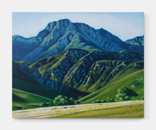 Craig Cameron-Mackintosh, like many artists cited here, mentioned Richter as an inspiration. The artist’s work Fresco (2023), included in a recent exhibition at EBONY/CURATED, features an out-of-focus landscape, along with several portraits in this same hazy style. In an interview, the artist explained that he was used to working with a more photorealistic style, but suddenly began finding inspiration in a freer, fuzzier technique when a deadline meant he had to put his perfectionism aside. “I started using oil stick, which lends itself to this kind of smudgy, dragging technique,” he said. “I’m leaving a little bit up to the viewer to fill in the gaps.”