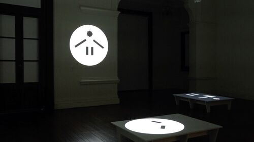 For a long time, Hong has been using a method to create repeated images. She does this by making lots of something using the basic shapes of dots, lines, and planes. This shows a fundamental understanding of time and how repetition can create differences, not just copy things. We can see this in the way she uses a simple pattern again and again. But even though the pattern is simple, using it repeatedly in a minimalist way creates a unique identity. It’s like each pattern becomes different from the others because of the endless possibilities for change. You can see this particularly in the symbols and sounds that the moving figures in her videos make.