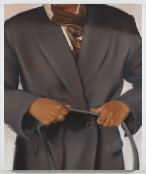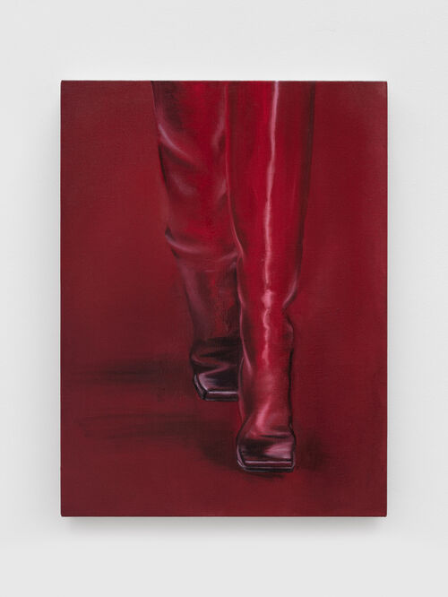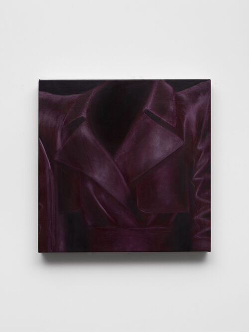 Sydney-based painter Mia Middleton, whose work is represented by COMA and was recently included in a group show at Roberts Projects in Los Angeles, renders familiar fabrics and clothing—leather jackets, patent pointed shoes—with soft brushwork.