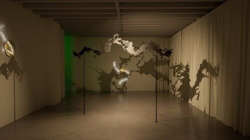 For Berlin Art Week, Galerie Nordenhake, which has represented Lam since she started her MFA at Stockholm’s Royal Institute of Art, will show versions of the artist’s narrative installation works that have been exhibited at The Swiss Institute in New York and Portikus in Frankfurt. “Tales of the Altersea (Prologue)” includes a VR work, Phantom Bouquet (2019–20), that digs into the transfer of intergenerational knowledge. Elsewhere, several haunting kinetic sculptures use neon, brass, and shadow play to reference the show’s conceptual touchstone: “Sea Palace,” a three-story restaurant-ship that sailed from China to Europe in the 1990s.