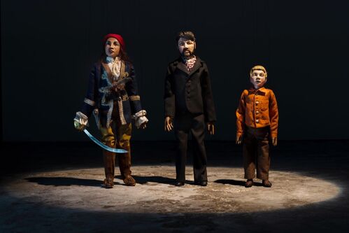 Friedl portrays this cast of characters, which spans the wealthy and powerful as well as marginalized outsiders, in sculptural installations.The work from which the exhibition takes its name, for instance,turns the artist’s selected protagonists into glove puppets. Friedl’s newest work, Everyone is a conspiracy theorist (2023)—which he created specifically for this exhibition—is a model reconstruction of the shack featured in the Charlie Chaplin movie The Gold Rush (1925). Placed perilously on a wedge-shaped platform, the construction questions the possibility of authentic reproductions in the realms of film, art, and, perhaps, life.
