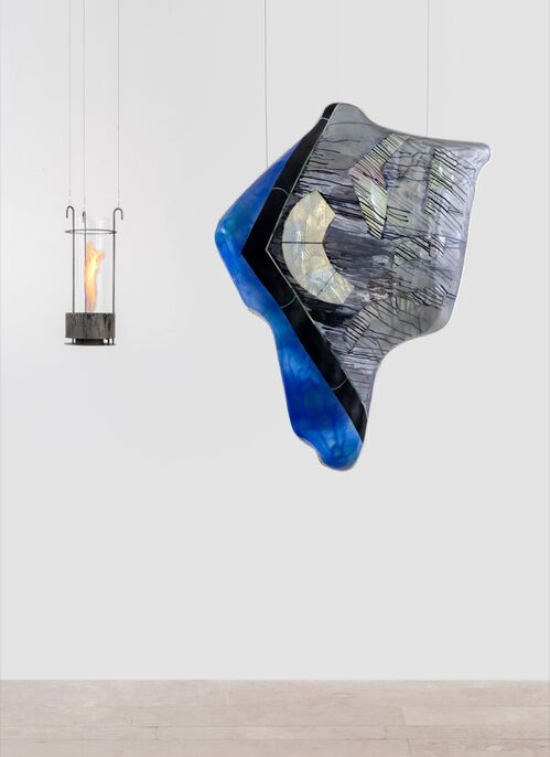 For her show across all three floors of Capitain Petzel, Moss is presenting brand-new works. Each involves a hanging “lumen,” or a flame within a transparent and metal casing, which will be lit during the evening.