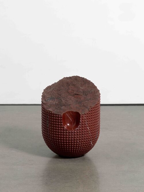 With sculptures and textured paintings made of plaster, gesso, and varnish, Davide Balliano explores the boundaries of perception. “Event Horizon” features new marble works that use the arch and undulating U-shapes that the artist has become known for. These sculptures remove the shape from the seemingly endless waves of patterns in his paintings, isolating the form with single and double arches that explore voids and negative space.
