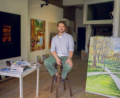 Keiran Brennan Hinton is firmly on the radar this fall. The Canadian artist presents a solo exhibition, “A Break in the Clouds” (September 8th–October 21st), at New York’s Charles Moffett, his first since the gallery started representing him last year. The artist’s dazzling paintings, produced en plein air, are becoming increasingly known to the international art world—his sold-out solo booth with Charles Moffett was a highlight of Felix Art Fair in Los Angeles in February; and he had 2022 solo shows at Tokyo’s Maki Gallery and Montreal’s Galerie Nicolas Robert. Plus, a large new painting of a sun-dappled living room was a focal point of Charles Moffett’s NADA New York booth this past May.
