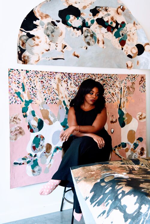 B. 1985 in Lomé, Togo. Lives and works in Philadelphia and Abuja, Nigeria.