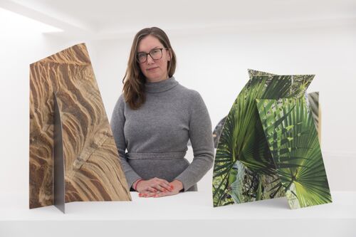 These images then join a growing archive in Wilson’s studio where she lives with the images, allowing them to speak to her and each other before she begins to test them with cardboard maquettes of interlocking fragments. Once she’s settled on a sculptural form at scale, the chosen images are printed onto metal sheets then moved into her metal workshop.