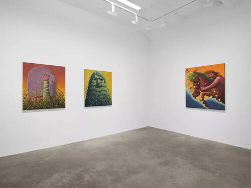 As a child in Oregon, Meade encountered Rick Griffin, a West Coast psychedelic artist known for designing Grateful Dead album covers. Later, he discovered Raw magazine when he started skateboarding. Such influences persist in the kaleidoscope palettes and playfulness of Meade’s paintings today. Though he first pursued college football, he ultimately returned to his childhood home of Portland for his BFA. He later earned an MFA from Pratt Institute, and attended the Skowhegan School of Painting and Sculpture.