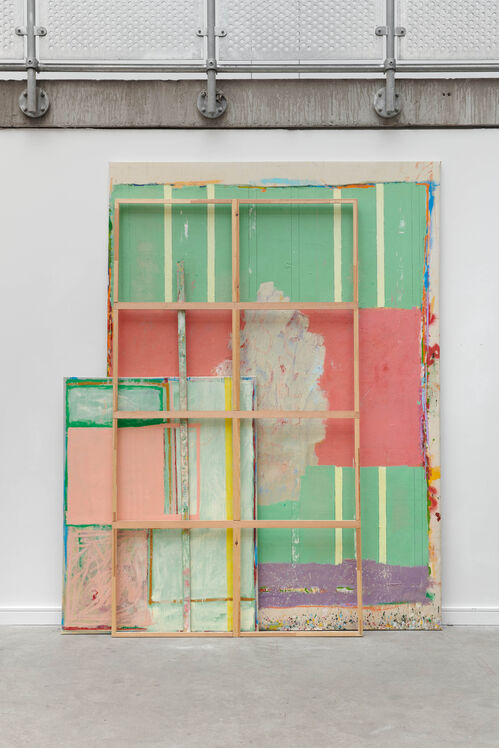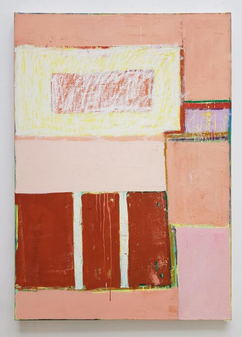These political, public, and communal interventions in the urban fabric are synthetized by Pulido into luminous, pastel color fields. Though two-dimensional, his works have a sense of depth. He layers paint, which he then scrapes or sandblasts away before partially painting it over again. The result is a palimpsest with the look of an abstract painting, evoking the political gravitas of the walls he grew up with, and the emotive charge of a memory.