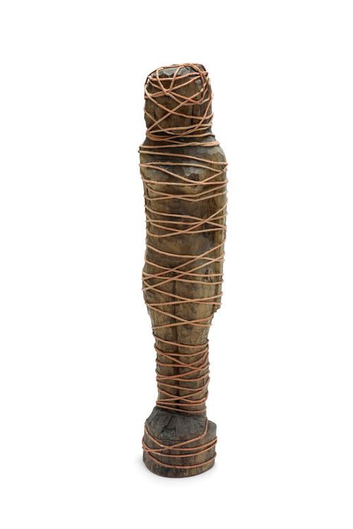 Layo Bright, for instance, hints towards overlapping histories of commerce and migration by fusing glass (a material traded between Europe and Africa for centuries) onto the plaid pattern of a Ghana “must-go” bag (a cheap yet sturdy tote bag sometimes used by migrants to transport their belongings). Samuel Levi Jones deconstructs legal and medical books and newspapers to create a quilt-like surface that evokes the styles of both Robert Rauschenberg and the Gee’s Bend Quiltmakers. The exhibition raises questions of intimacy and distance, asking what separates us and what brings us together.