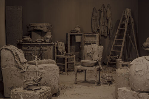 “Double Exil,” a retrospective solo exhibition of the late Franco-Chinese artist, explores his own “double exile,’’ an intersection of immigration and nomadism. Chen’s work evokes the feeling of isolation—which for him personally, was a consequence of cultural alienation. For instance, the exhibition culminates in his installation, Purification Room (2000), a domestic room where the walls, floors, furniture, and objects are covered in monochromatic clay. The exhibit urges viewers to confront themselves, to meditate among a familiar yet muted backdrop.