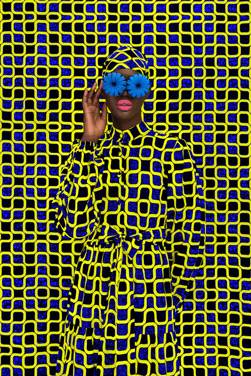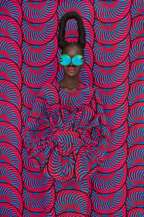 Though she only started her artistic career as a photographer three years ago, Thandiwe Muriu’s work has already been acquired by several significant collections, such as the Fondation Gandur in Switzerland and The Contemporary African Art Collection by Pigozzi. Her striking photographic self-portraits create kaleidoscopic illusions without digital manipulation, swaddling herself in vibrant designs and Ankara textiles common in Central and West Africa.