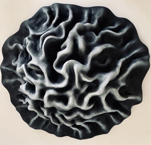 The titles refer to an inaccessible patch of ocean between Iceland and Svalbard known as Loki’s Castle (in reference to the Norse mythological god) that is home to a field of active hydrothermal vents, located at a depth of 2,000 meters in the mid-Atlantic. The extreme ecosystem is believed to be the most similar current climate to that of earth when life began, prompting a rush by biotech companies and mining corporations to exploit the zone as a new frontier for rare genetic matter and minerals. Calling to mind the legendary city of Atlantis, Novitskova’s sculptures evoke the possibility of monstrous new life forms coexisting with sophisticated unmanned machines in these far submarine reaches, beyond our limited human sight.