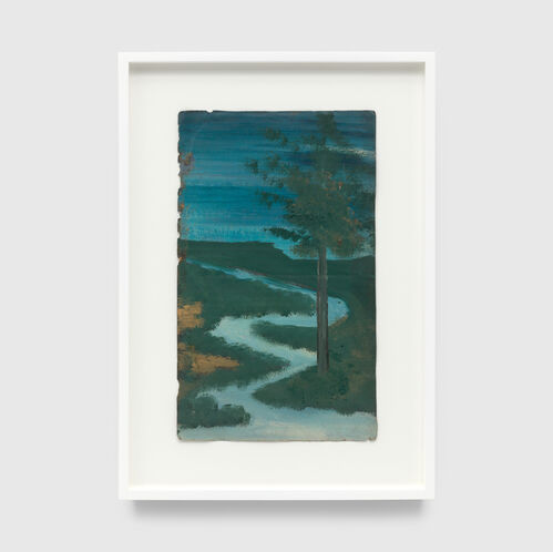 Untitled (Vertical Landscape with Single Tree, Meandering River Up Hill) , n.d.
