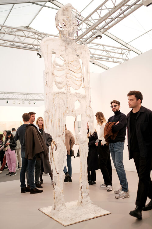 For a London art market that is clouded in uncertainty, early nerves on the VIP day were abated by strong presentations by exhibitors across the concourse. A strong showing from celebrities and major collectors also helped to add a touch of star power, with names such as Emily Blunt, Kim Cattrall, Jarvis Cocker, Giancarlo Esposito, Bella Freud, Andrew Garfield, Dan Levy, Mabel, Rami Malek, Sam Mendes, Sienna Miller, Andy Murray, and FKA Twigs among those spotted across the fair.