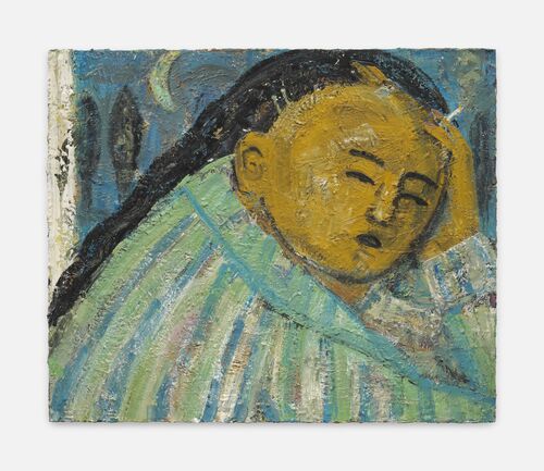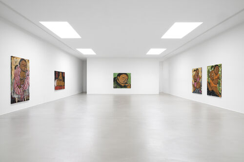 Monica Kim Garza’s exhibition “The Trees and bushes beside you” is, according to the artist, the visual translation of a poem entitled “Lost” by the American poet David Wagoner. Her vibrant paintings challenge traditional narratives, placing women of color at the forefront of a utopian world of unfettered joy and freedom. The works oscillate between playful ease and thoughtful contemplation, focusing on intimate desires and fleeting moments of peace. In works like The Reading and Blue jammies afterstudy (both 2023), her subjects are caught in ambiguous emotional states. Through these works, she contemplates the continuous balancing act of modern life, juxtaposing our routine actions with moments of respite and liberation.