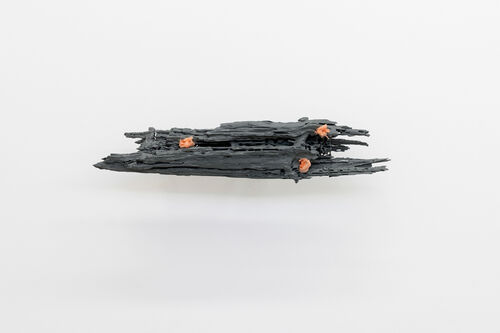 Swiss sculptor Roman Gysin challenges our usual patterns of perception in works where decoration intersects with the uncanny. His pieces—which take the form of sculptures, wall works, and installations—transform ordinary sights into ornamental works. For instance, Deep Decor III (2023), a wall-mounted sculpture, presents a gray piece of tree bark adorned with pink and orange flowers. Often, the artist finds his inspiration in his day-to-day life, which he then photographs as source material for future works.