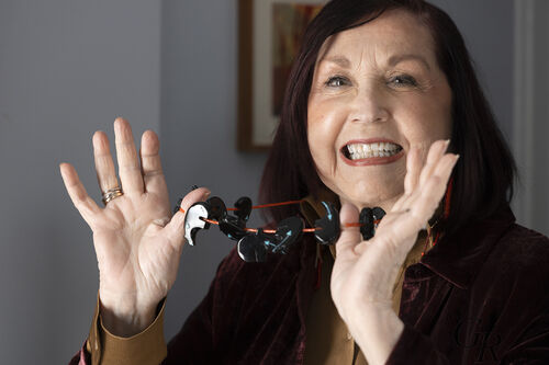 More recently, WalkingStick has turned to Indigenous beadwork, baskets, and jars—some contemporary, some historical—to find representative patterns. She often starts with the National Museum of the American Indian (part of the Smithsonian), where she researches the people who once lived on the land she’s painting. In some cases, groups continue to maintain a presence. Other times, as in the case of the Pocumtucks, entire populations died or were assimilated into other cultures and WalkingStick finds a pattern from a later group.