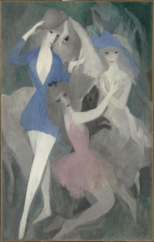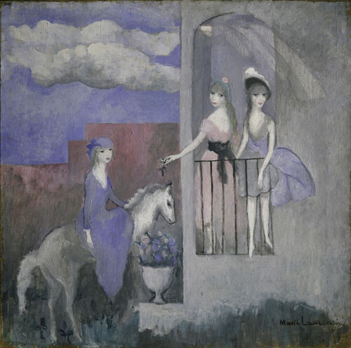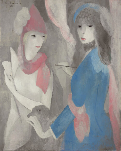 Despite Laurencin’s notoriety during her lifetime, her profile has receded since her death in 1956. This new reappraisal of the artist marks her first major institutional survey in the United States since 1989. But a handful of smaller recent presentations have hinted that a Laurencin revival was on its way. This fall, Nahmad Contemporary showed her work in a solo booth at Independent 20th Century in New York. In 2021, she figured prominently in “A Future We Begin to Feel,” a group show at New York’s Rosenberg & Co. organized to honor the 50th anniversary of Linda Nochlin’s seminal essay “Why Have There Been No Great Women Artists?” And in 2019, when the Museum of Modern Art reinstalled its permanent collection galleries, two of Laurencin’s self-portraits were given a high-profile spot alongside Picasso’s Les Demoiselles d’Avignon (1907)—doing little to sever her discursive ties to the Spanish painter, but increasing her visibility nonetheless.