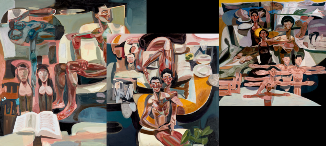 The bodies in Tesfaye Urgessa’s paintings are both potent and vulnerable. Their powerfully rendered muscles are highly visible, as though the viewer can see straight through the skin to the insides of his subjects. In some works, limbs are disembodied and figures seem to merge into one another, creating a sense of communal fusion, which can become claustrophobic on his energetic canvases. “I want my figures to have almost an emotional vulnerability,” he said in an interview at his London gallery, Saatchi Yates. “I want to keep them confident but at the same time fragile. They have been through something but made it. You might see a scar, but it’s not a mark of defeat.”