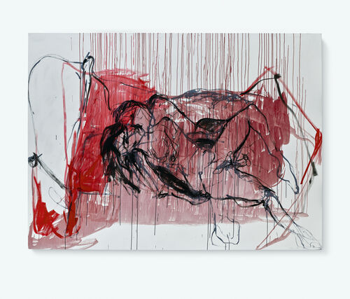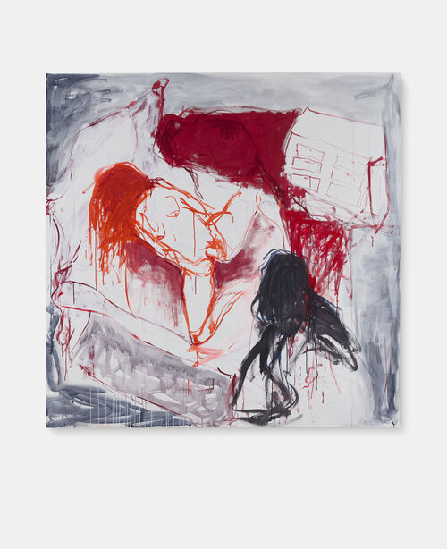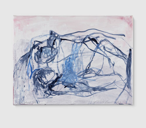 Triumphant after battling—and beating—cancer, Emin marks a striking return to New York with an exhibition at White Cube on Madison Avenue. Titled “Lovers Grave,” the show unfolds in 26 works, which range from sweeping canvases in the main atrium to smaller paintings in the far quieter space downstairs. Her new works strike a chord between the realities of death and the tenderness of human connection, with each piece embodying the strength she’s found in facing her mortality. By sheer willpower, Emin excavates this vulnerability, chiseling out figurative portraits that celebrate life’s intensity and resilience.