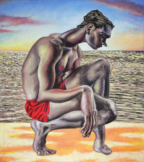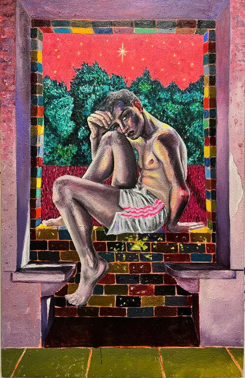 Adam Baker, a London-based figurative painter, probes the depths of self-discovery through his pensive subjects. His work, often illustrating introspective masculine figures, is influenced by his experiences of travel and his journey as a queer individual navigating the world. In his debut solo exhibition, “Passing through the Soft Storm,” Baker creates a space for open interpretation and reflection, inviting viewers to connect with the figures in his paintings.
