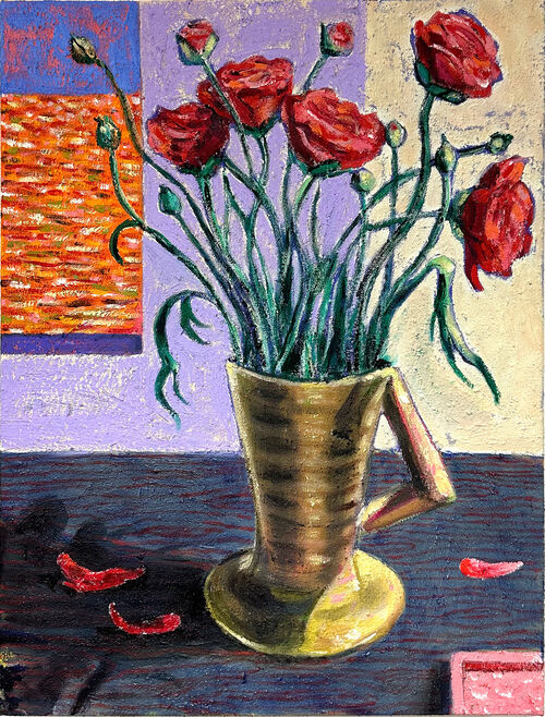 Batty refers to the “Tone Poems” series as “visual haikus,” designed to bring together disparate elements to convey more profound messages. Like haikus, Batty’s art is structured by a strict layout, but their emotional resonance or range are not hampered by these limitations. Some paintings, like Tone Poem 13 (2018), illustrate sharp contrasts between bright colors, whereas others, like Tone Poem 12 (2018), employing soft hues, elicit a calmer visual experience. Throughout, the paintings are filled with not only a spectrum of colors but also a spectrum of emotions.