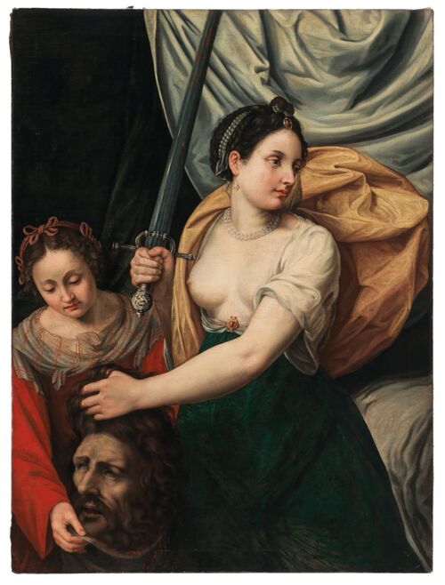 “We don’t know if Fontana’s father allowed her to paint with life models, but we do know he was erudite and that she had access to prints, books, antique sculptures, and written materials that would have guided her in how to do figure painting,” said Brilliant. With these, Fontana developed a practice that included portraiture, as well as religious and mythological paintings. Fontana’s remarkable skills earned her prestigious commissions for portraits of nobility. Her close eye for detail allowed her to carefully render symbols of wealth and trade that would have been important to her subjects, such as jewelry and fine clothes.