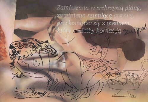 In these works, fleshy moments of pleasure are shown at a large scale, blurred and in soft focus. Drawings of nudes are scratched over the top of the images in black paint, along with verses from poems by Maria Pawlikowska Jasnorewska (sometimes known as “the Polish Sappho”). But while Viva—which ran serious criticism, and hired Anna Wintour as its fashion editor—was aimed at women, it was published and marketed by men. These wall-spanning monuments to women’s sexuality try to capture the joy of intimacy from a female perspective, while simultaneously critiquing the aestheticization of women’s pleasure by male-oriented society.