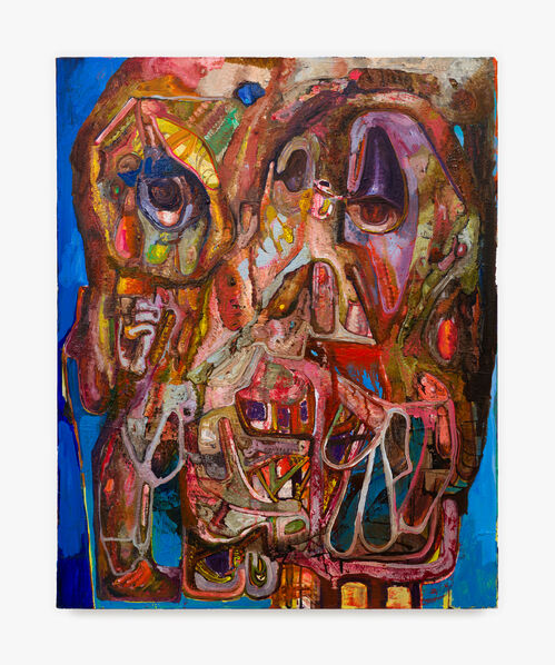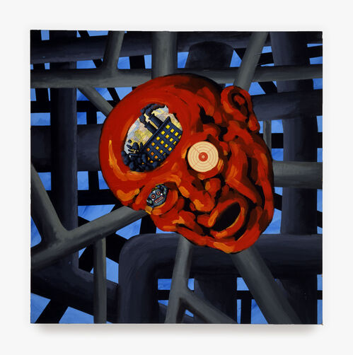 Here, pieces such as Keiichi Tanaami’s epic painting of a sci-fi scene, Fragment of Time (2022), or Steve DiBenedetto’s grotesque abstract portrait, Mental Reupholstery (2022–23), portray these excesses through unchartable motion or deluges of color. Both works evoke an unabating sense of anxiety through their visual overstimulation. Interested in overdosing on the visual experience, Storr hopes viewers engage with uncontrollable sensations provoked by the artwork, he said.