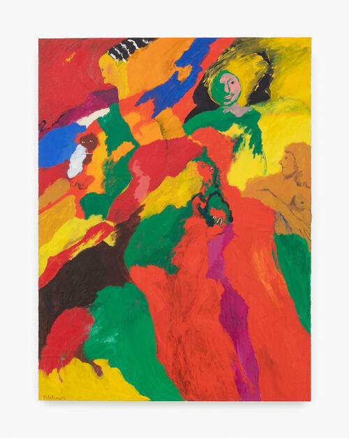 As a curator, Storr explores how our perception affects our judgment of certain artworks. Many of the works are lurid, garish, and otherwise difficult to look at for long, such as Gladys Nilsson’s Errent Field (2022), a bright landscape portrait where a giant figure hovers over running figures. Even black-and-white works, such as Jim Shaw’s painting of several distorted Donald Trump faces, Large Trump Chaos II (2017), use tactics that opt for provocation rather than beauty. And yet these works, Storr argues, still communicate something important: how each artist experiences the distressing sides of life.