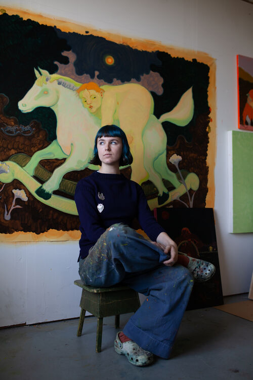Having graduated in 2022, Emily Kraus has already been heralded for her distinctive approach to painting. Currently represented by The Sunday Painter, she presented her debut solo show with the gallery in 2023, alongside group exhibitions at Matt’s Gallery and Sapling in London. In the same year, she won the Hopper Prize and was shortlisted for the John Moores Painting Prize.