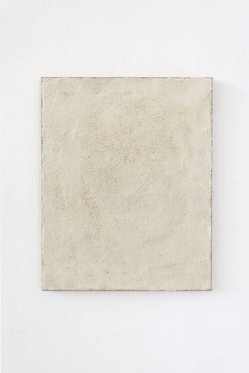 In Dan Rees’s practice, painting is a subversive way to speak about the politics of art: the relationships between viewer and artist, and between value and social function. To this end, previous bodies of work have seen the artist experiment with subjects and materials from his upbringing in working-class, suburban Wales, such as pebbledash, a gravel mixed with cement that often decorates houses in the U.K.