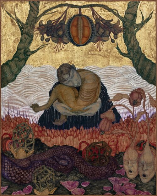 Public Gallery is hosting Mexico-based PEANA to pair the works of Danish painter Victor Bengtsson and performance artist Vica Pacheco, shown by the two galleries respectively. Bengtsson’s exhibition, entitled “Når den hvide rod rejser sig / When the white root rises,” fuses myth and modernity through oil paint and gold leaf on jute canvas, inspired by Greek mythology and Scandinavian folklore.