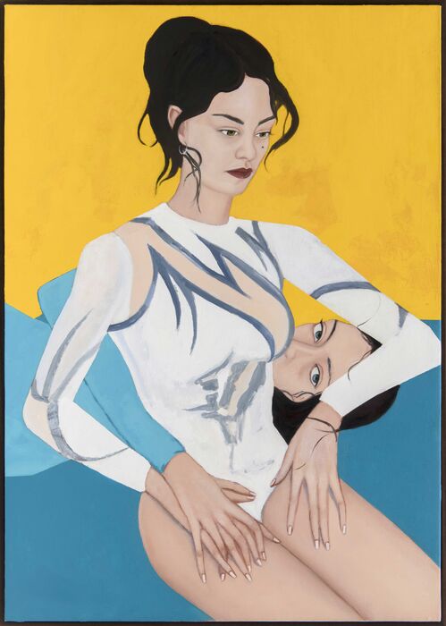 The same year Shachko passed, Sokol began working with THE PILL®, the Istanbul-based, woman-run gallery founded by Suela J. Cennet, which represents the French artist. In each of her recent exhibitions at THE PILL®, “I Had Trouble Sleeping, But She Said She Loved Me” (2018) and “You Better Paint Me” (2022), Sokol presented paintings where the figure is in full view and making eye contact with the viewer, evoking a powerful idleness.