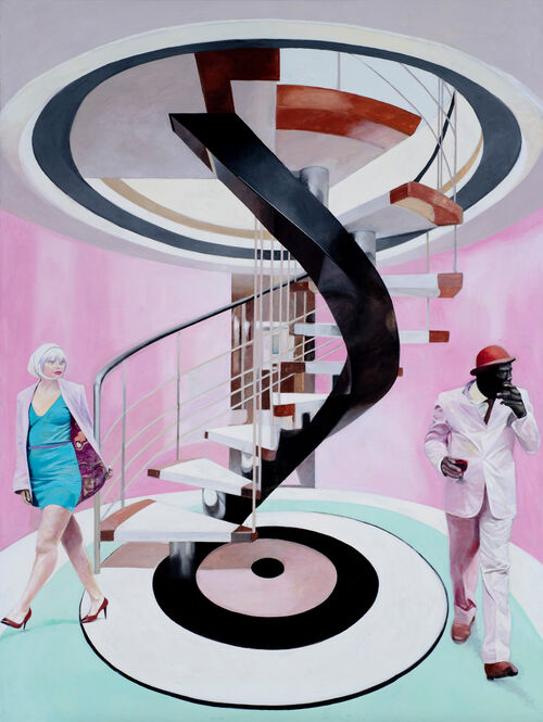 This first solo exhibition since Stokoe’s passing in 2019 features 14 major paintings, some previously unseen, showcasing the evolution of his style over decades. His earlier works, often influenced by architect Richard Meier, depict psychologically charged interior spaces in a style reminiscent of the 1960s and ’70s. Later pieces from the 1980s and ’90s exhibit a more experimental approach, with fractured scenes and vivid colors reminiscent of Pop Art, as seen in Spiral Staircase with Two Figures (1983).