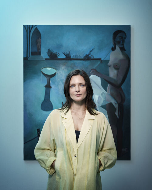 British painter Tahnee Lonsdale, the subject of an upcoming show at MASSIMODECARLO, also builds the female figure from disjointed geometric shapes. Rendered in deep shades of lapis, scarlet, and teal, her forms feel robust and totemic despite their fragmentary constructions and distorted postures. “I want to show them taking up space on the canvas and also as containing a lot of space,” said Lonsdale.