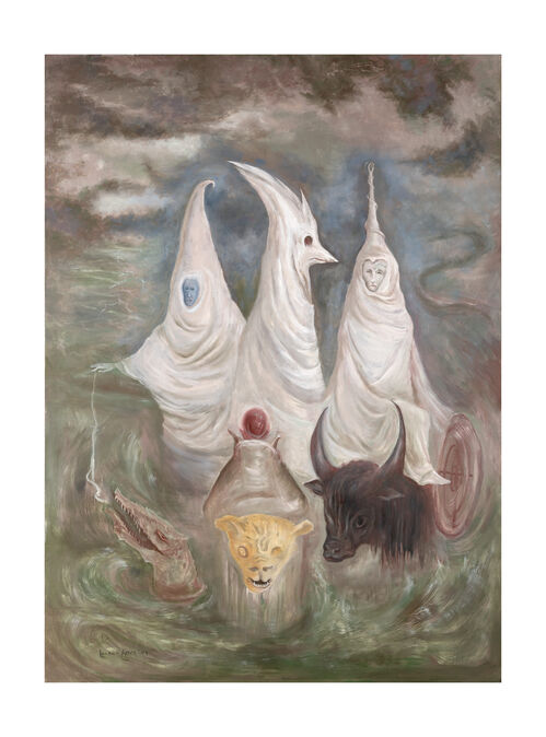 Featuring 23 artists, “Playing with closed eyes” includes work from several Surrealist heavyweights, such as Mexican painter Leonora Carrington, whose 2005 painting White People, included in the show, illustrates three mystical figures gathered together in a swamplike landscape. The exhibition will feature other pivotal figures associated with Latin American Surrealism, such as Remedios Varo and Kati Horna.