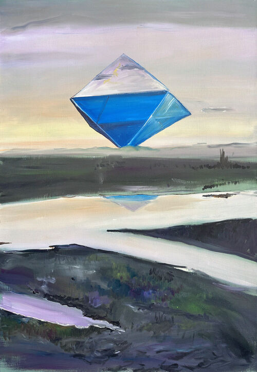 An untitled landscape painting of a beach awash with sunrise hues, for instance, acts as a portal to a world without human interaction. Here, Castro invites viewers to ponder their role in nature’s cycles, presenting a compelling narrative on the world’s transformation, currently even more urgent due to climate change. Drawing on Carl Jung’s idea that the house symbolizes the psyche, Castro’s exhibition implies the destruction of the individual in the context of a possible apocalyptic future natural world to spark conversation about our tumultuous relationship with the environment.