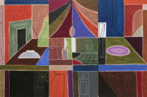 Muzae Sesay’s enigmatic abstractions combine shapes and colors to suggest surreal narratives. When you look at these paintings, it feels like you’re entering a dreamscape of colors and lines where reason gives way to a brightly saturated, emotional headtrip.